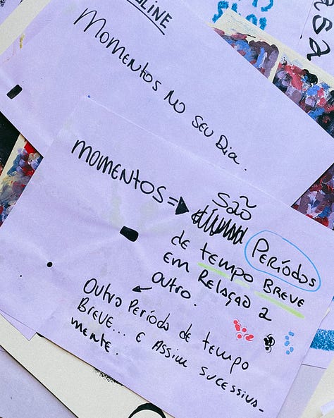 Com o exercício de não racionalizar de forma concreta o conceito de momento nos voltamos ao mundo sensorial e abstrato, deixando de lado o racional, e abraçando o sentir dos momentos.